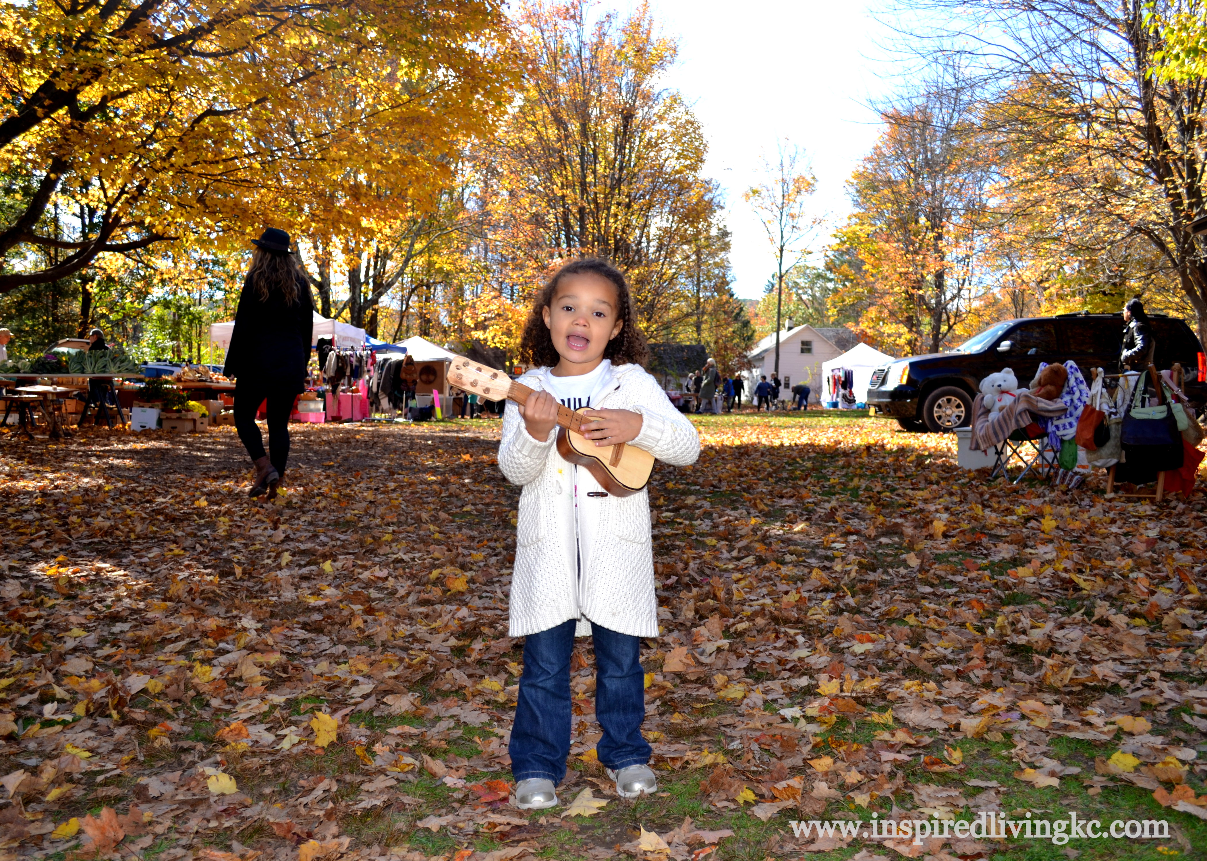 On Sunday, we figured since we had made our way to the Catskills of New York, we would need to visit Woodstock.  Disappointed by the fact that the actual farm where the hippie festival took place is not even near Woodstock, we still enjoyed the town, the hippie shops, hippie restaurants and hippie signs warning to STOPFracking.  My husband, parents and child found our way to the Woodstock Flea Market where we searched for an inexpensive replacement wedding band for my husband and settled for a hippie-toy guitar for Parker.  What could be more fitting as a souvenir from Woodstock?  We made one last rendezvous with the married couple before they headed back to New York City.  It would only be a few more days before we’d see them again for more wedding celebrations back in Kansas City.
