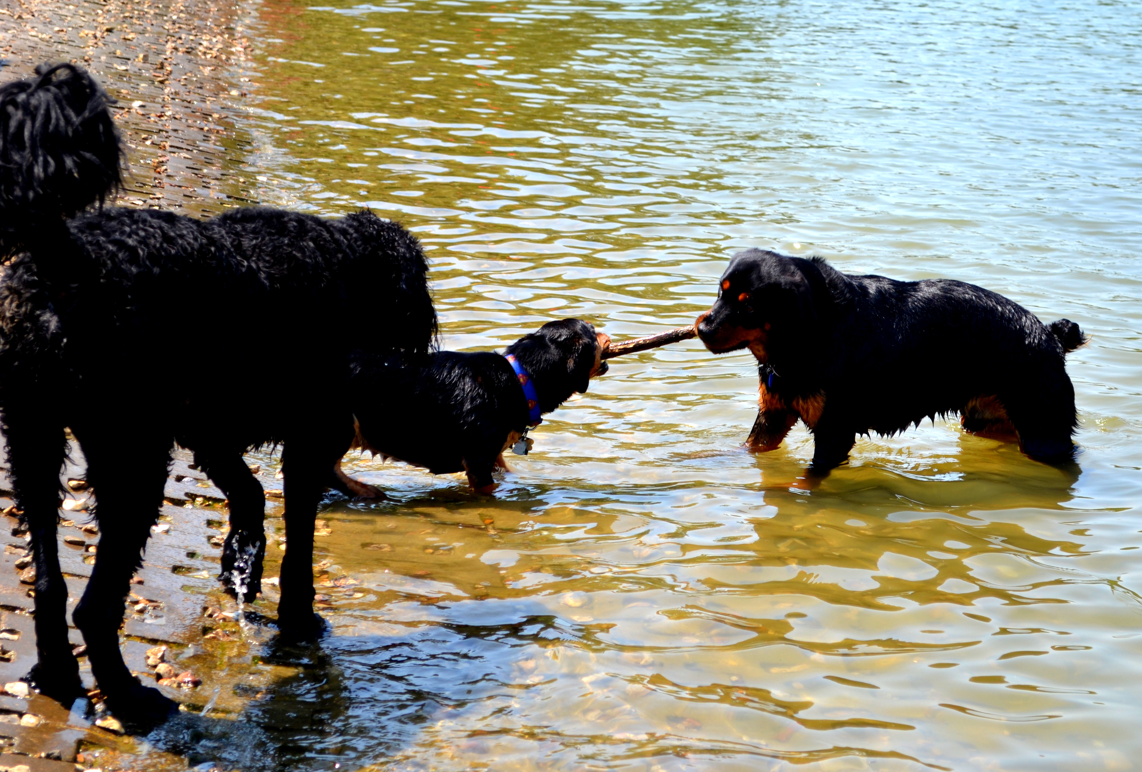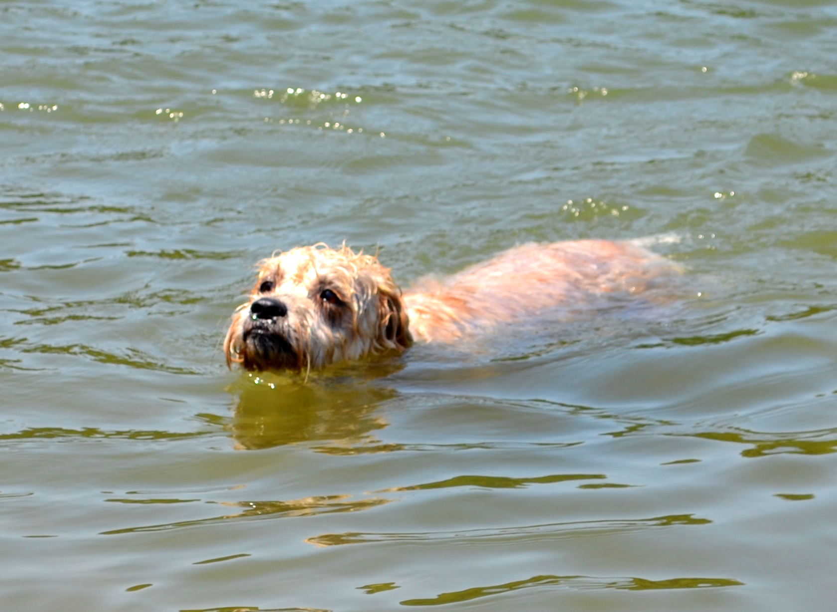Just before I could leap forward and make the 10 soaked steps it would have taken to reach him, Macy swam out in front of me and snapped Harper to attention.  It was as if in a split second she taught him how to doggy paddle and he could finally make a forward motion in the water again.  She lead him to the shore and as soon as he could reach he practically leapt over her to get to dry ground again.  Macy suddenly made up for her earlier run off and became the Lassie for the day to save Harper from drowning.  Yea, like I said – they are “special” dogs.