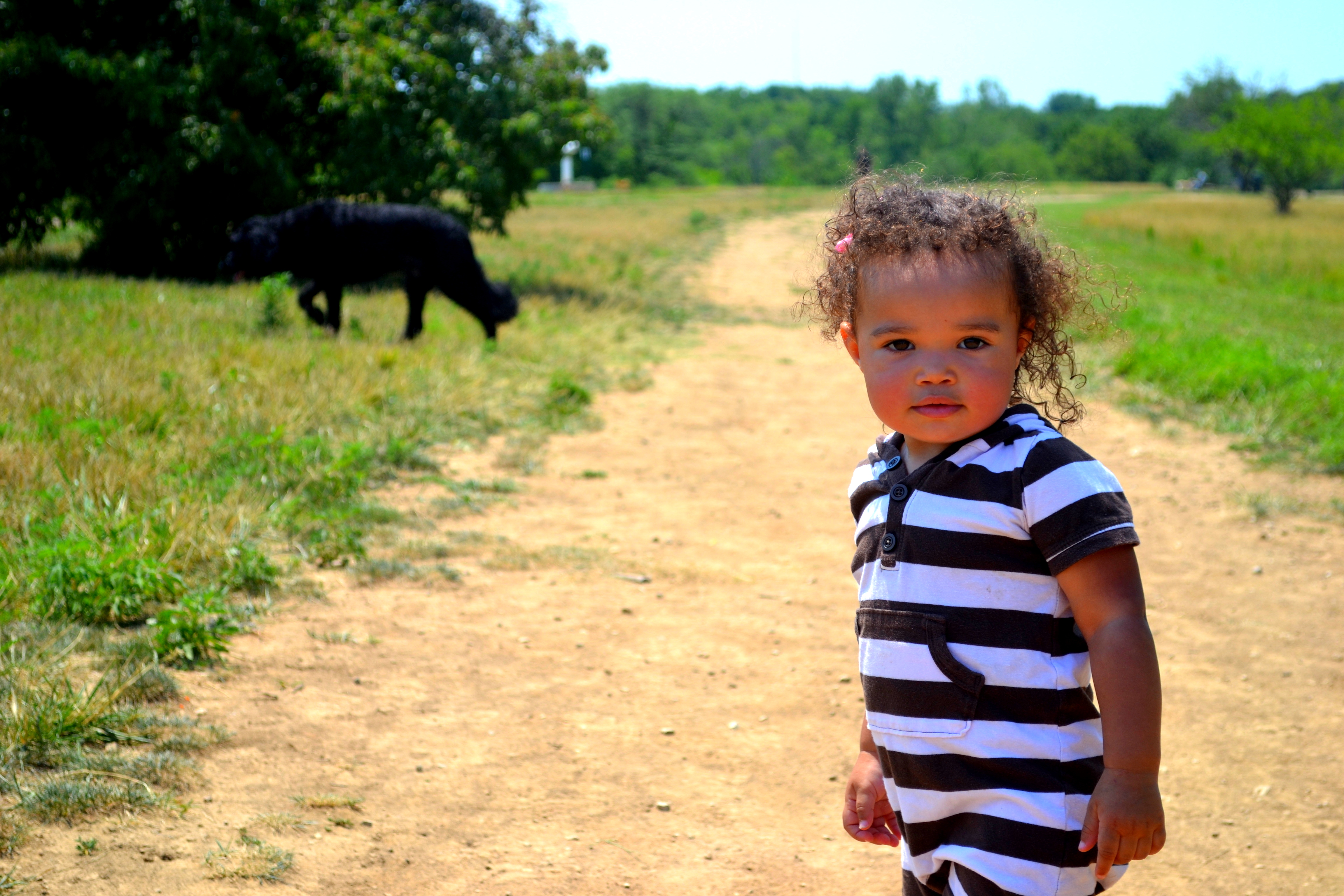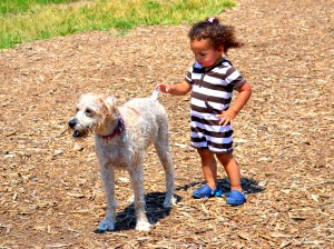 The dog park area is large in comparison to other parks we have gone to, there is a long wide path down the middle flanked with grassy areas on either side and wooded areas beyond that.  Although there are paths down towards the wooded areas, we have always seemed to stay in the middle as it is the quickest way to the water.  My dogs love to be social with other dogs, although they lack social etiquette and don’t quite get it when other dogs are annoyed with their jovial nosiness.  My husband and I haven’t dedicated adequate time to training our dogs, although, we are pretty proud of them coming when we call (eventually).  On our last trip to the dog park another dog accidentally knocked Parker to the ground, the shock made her cry and our dogs immediately retreated from their playful fun to lay down in front of their baby to protect her.